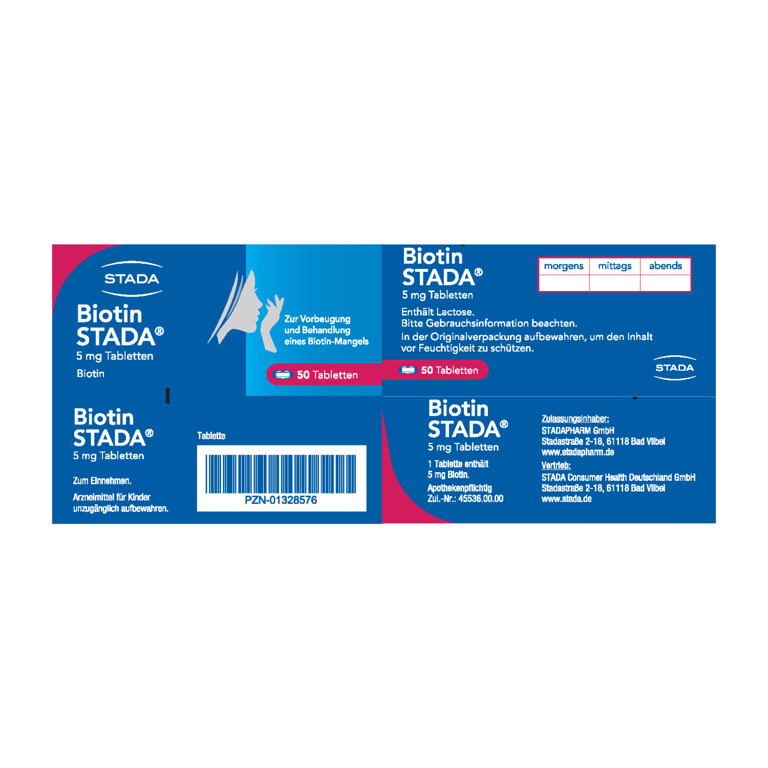 Anwendungsgebiete: Prophylaxe und Therapie von Biotin-Mangelzuständen. (Zur Prophylaxe sind weniger als 0,2 mg Biotin am Tag ausreichend) zusätzlich für Biotin STADA 5 mg: Therapie von Biotin-Mangelzuständen beim sehr seltenen Biotin-abhängigen, multiplen Carboxylasemangel.