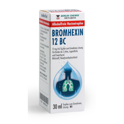 Sie sind geeignet für Kinder ab 2 Jahren und Erwachsene. Bei Kindern unter 2 Jahren darf Bromhexin 12 BC wegen des Gehalts an Minzöl nicht angewendet werden. Bromhexin ist die Kurzform für den Wirkstoff Bromhexinhydrochlorid. 12 bedeutet die Wirkstärke in Milligramm pro Milliliter. BC steht für BERLIN-CHEMIE.