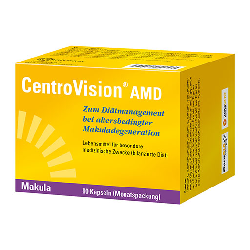 Für die trockene altersbedingte Makuladegeneration gibt es in Europa bislang keine zugelassene medikamentöse Therapie. Wissenschaftliche Studien haben jedoch gezeigt, dass die Einnahme einer speziellen Kombination aus Vitaminen und Mikronährstoffen das Risiko für das Voranschreiten der AMD vermindern kann. Die Zusammensetzung der Inhaltsstoffe von CentroVision® AMD wurde nach den wissenschaftlichen Erkenntnissen einer groß angelegten Humanstudie (AREDS 2 Research Group JAMA 2013; 309: 2005-2015) sorgfältig aufeinander abgestimmt. CentroVision® AMD enthält eine bilanzierte Stoffkombination aus freiem und natürlichem Lutein und Zeaxanthin, den wichtigen Vitaminen C und E sowie die Mineralstoffe Kupfer und Zink in optimiertem Anteil. Bei der Herstellung des hochwertigen Produkts kommen ausgewählte Markenrohstoffe wie FloraGLO® und ZeaONE® zum Einsatz.