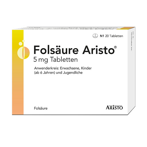 Folsäure ist maßgeblich an der Blutbildung sowie am Wachstum und an der Vermehrung unserer Zellen beteiligt. Das essentielle Vitamin ist für alle Entwicklungs- und Erneuerungsprozesse in unserem Körper unentbehrlich. Das gilt auch für die gute Entwicklung eines Babys im Mutterleib. Die empfohlene Tageszufuhr beträgt 300 μg (Mikrogramm). Sie wird in Deutschland von einem großen Teil der Erwachsenen nicht erreicht. Folsäure Aristo® 5 mg von Aristo Pharma ist ein Arzneimittel mit dem bewährten Wirkstoff zur Vorbeugung und zum Ausgleich von Folatmangel.