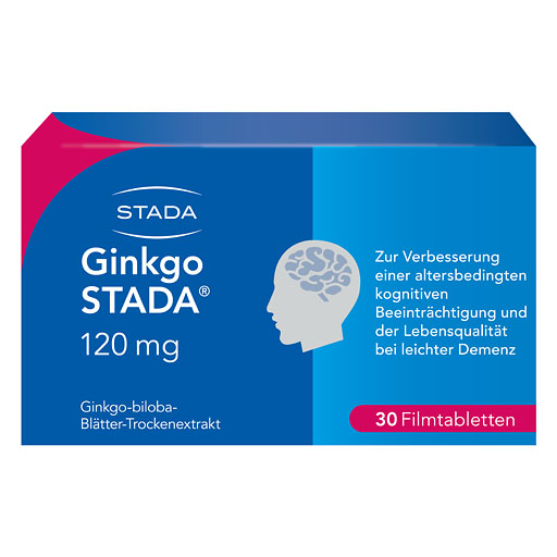 Anwendungsgebiete: Ginkgo STADA® ist ein pflanzliches Arzneimittel zur Verbesserung einer altersbedingten kognitiven Beeinträchtigung und der Lebensqualität bei leichter Demenz. Enthält Lactose und Glucose.