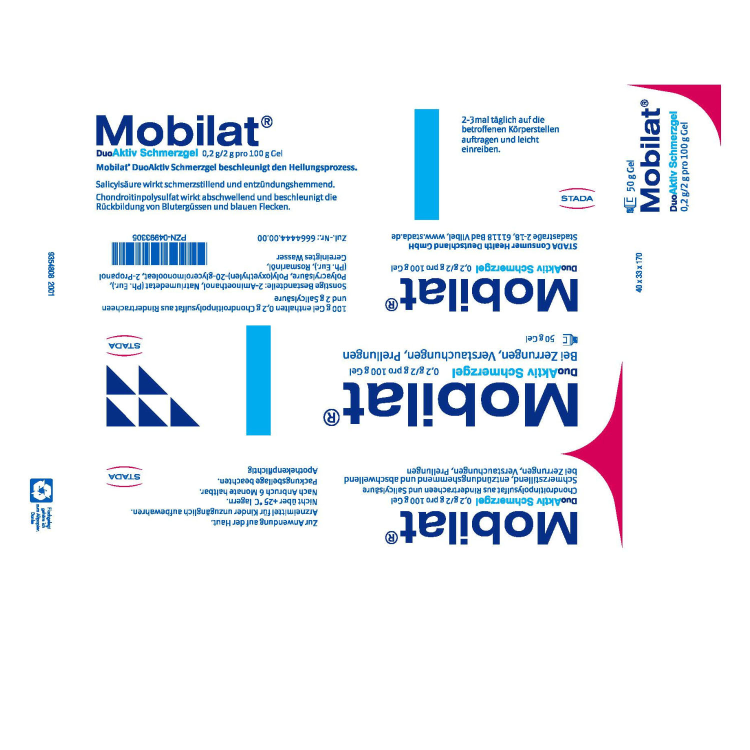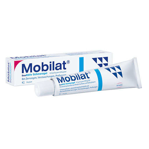 Mobilat® Schmerz-Gel hat die bewährte 2-fach Aktiv-Formel mit der einzigartigen Kombination zweier aktiver Wirkstoffe. Der erste Wirkstoff bekämpft schnell den Schmerz. Der zweite Wirkstoff reduziert effektiv die Schwellung und unterstützt die Regeneration des Bindegewebes. Mobilat® Schmerz-Gel beschleunigt so den Heilungsprozess bei stumpfen Verletzungen wie Prellungen, Zerrungen und Verstauchungen.