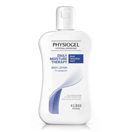 Die PHYSIOGEL® Daily Moisture Therapy Linie für sehr trockene Haut bietet hier eine Lösung, indem sie der Haut die benötigte Feuchtigkeit spendet Die Bodylotion mit 7 % Lipidgehalt ist eine tägliche Pflegelotion, die speziell für sehr trockene Haut entwickelt wurde, die oft unter Spannungsgefühlen und Schuppenbildung leidet. Sie verzichtet sie auf potenzielle Allergieauslöser wie Duft und Farbstoffe und ist so auch besonders für empfindliche Haut geeignet.